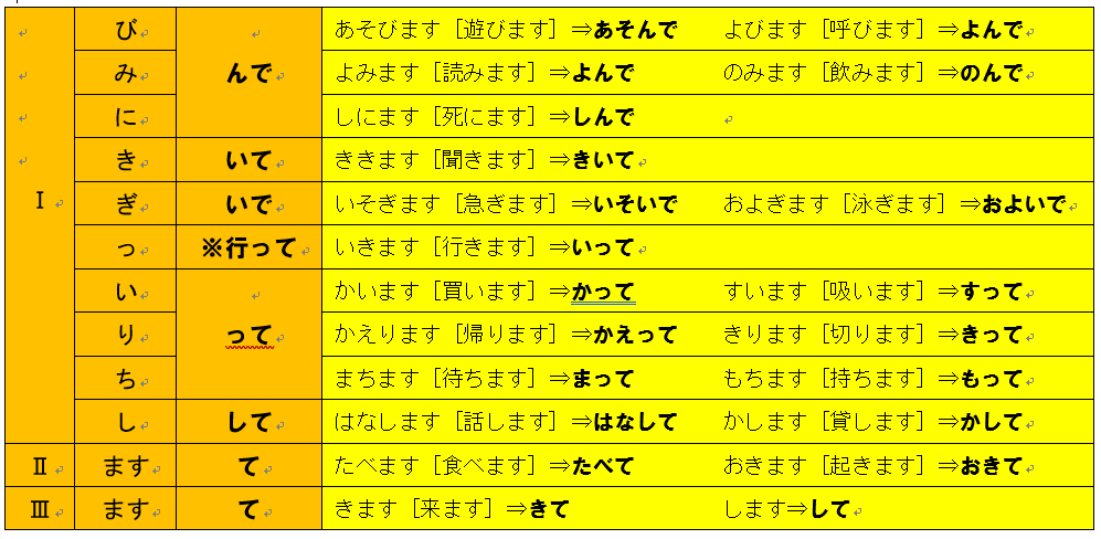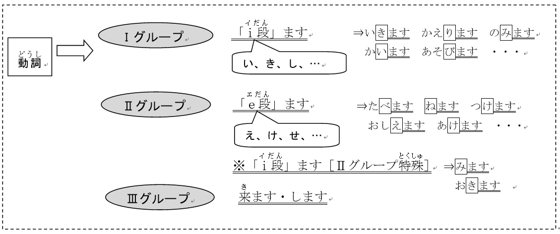 1)Ⅰグループ動詞(どうし)・Ⅱグループ動詞(どうし)・Ⅲグループ動詞(どうし)