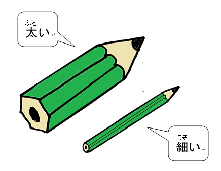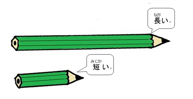 いい ⇔ 悪い 易しい(簡単な) ⇔ 難しい 近い ⇔ 遠い 高い ⇔ 安い 高い ⇔ 低い 重い ⇔ 軽い 新しい ⇔ 古い 早い ⇔ 遅い 速い ⇔ 遅い 長い ⇔ 短い 太い ⇔ 細い 硬い ⇔ 柔らかい