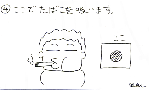 4)ここ( に・で )ご住所とお名前を書いてください。